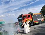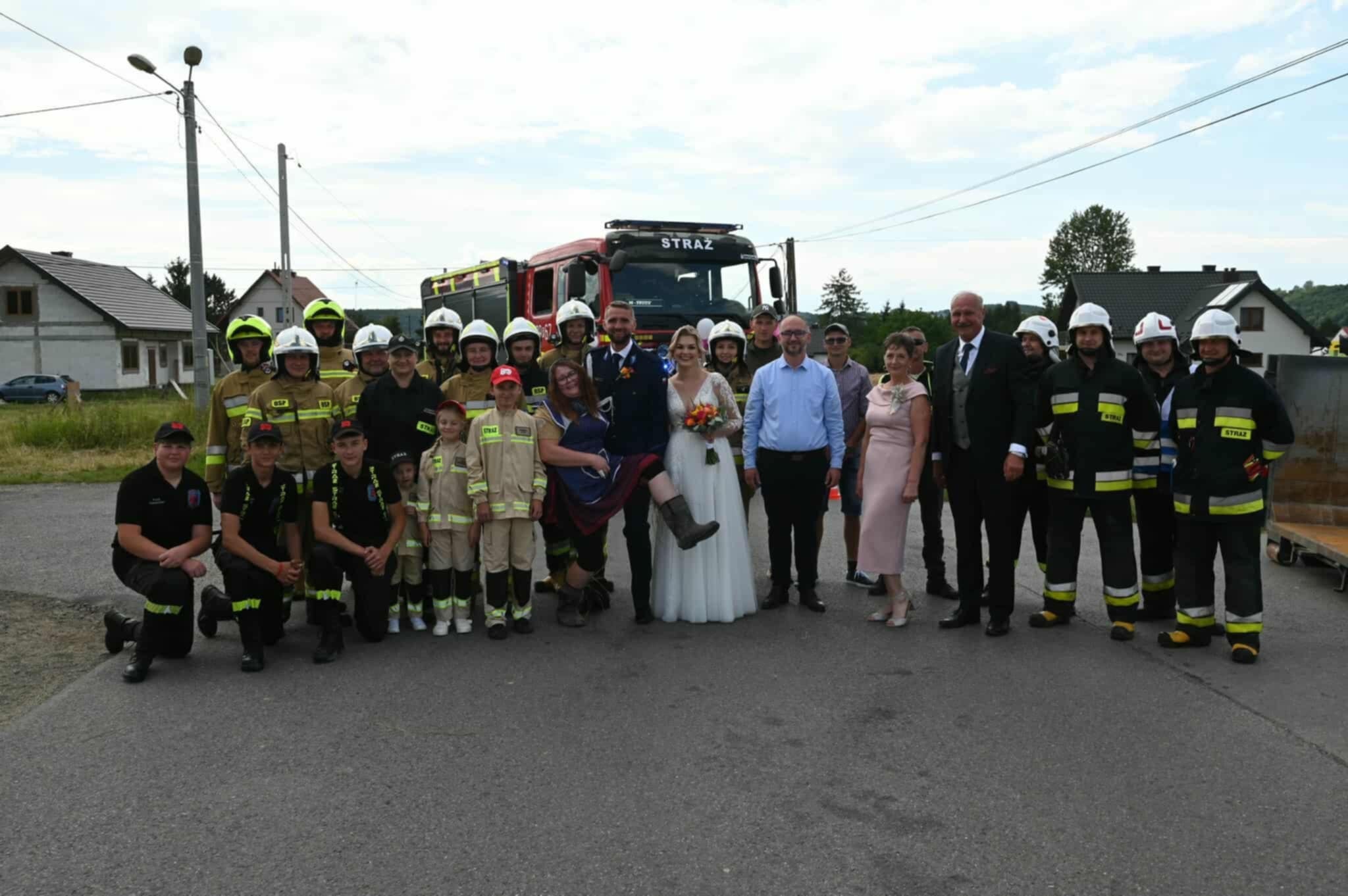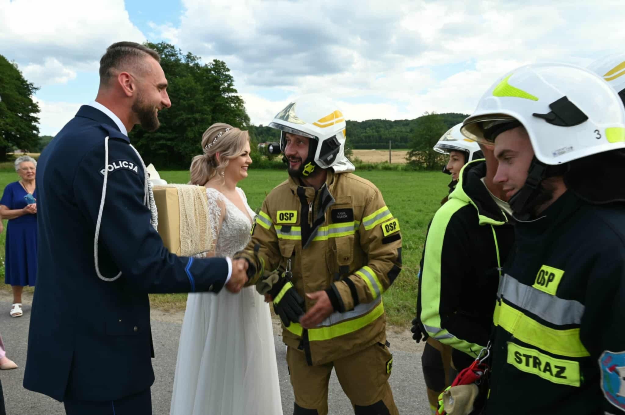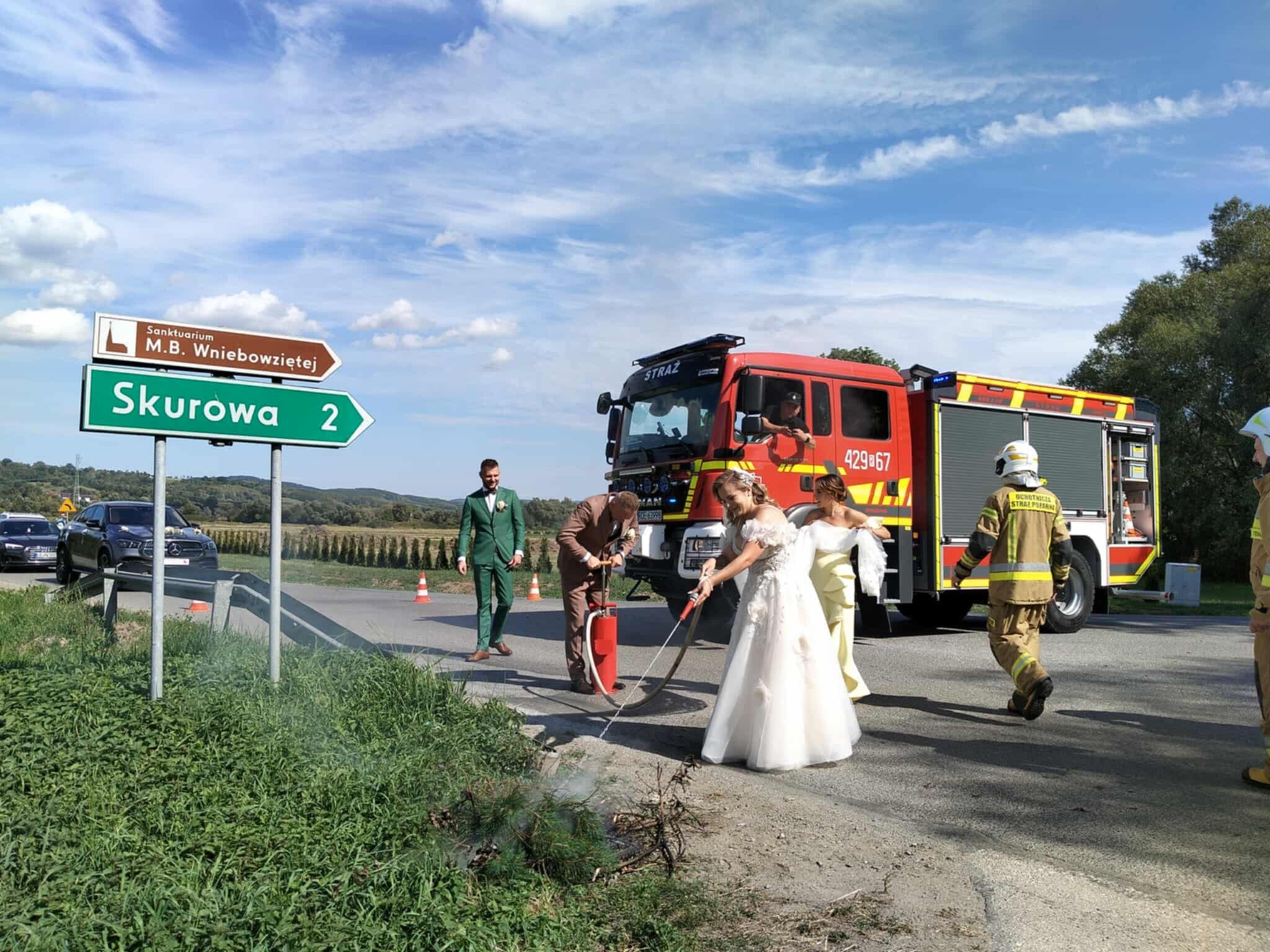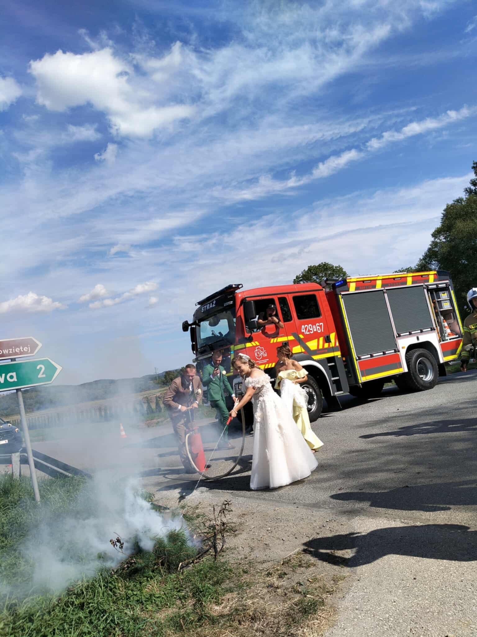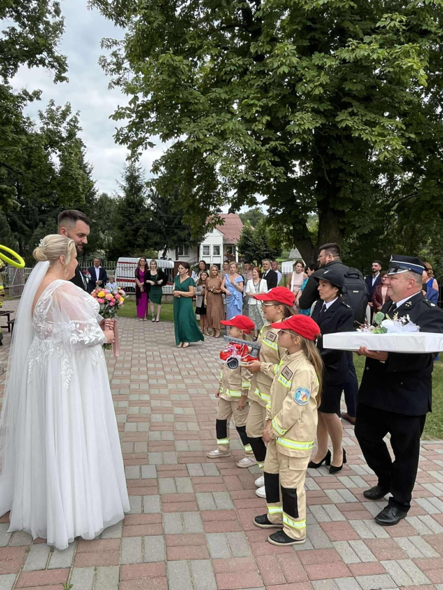 Nie mogło zabraknąć strażackiego akcentu – był szpaler pod kościołem, gratulacje od druhów i… oczywiście wyjazd do akcji.