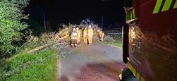 Gorzejowa zablokowana droga przez powalone drzewo.